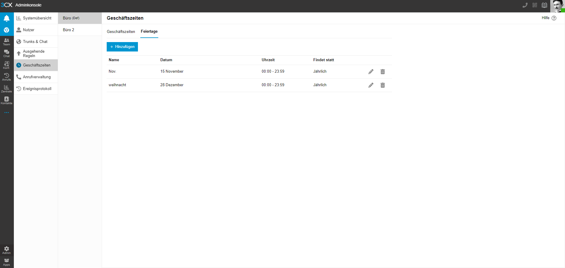 - Einfache Konfiguration von Warteschlangen und IVR: Die Konfiguration von Warteschlangen und IVR wurde vereinfacht. Jetzt können Sie problemlos festlegen, wie Anrufe während der Bürozeiten, Pausen, Schließzeiten oder im Urlaub behandelt werden sollen.