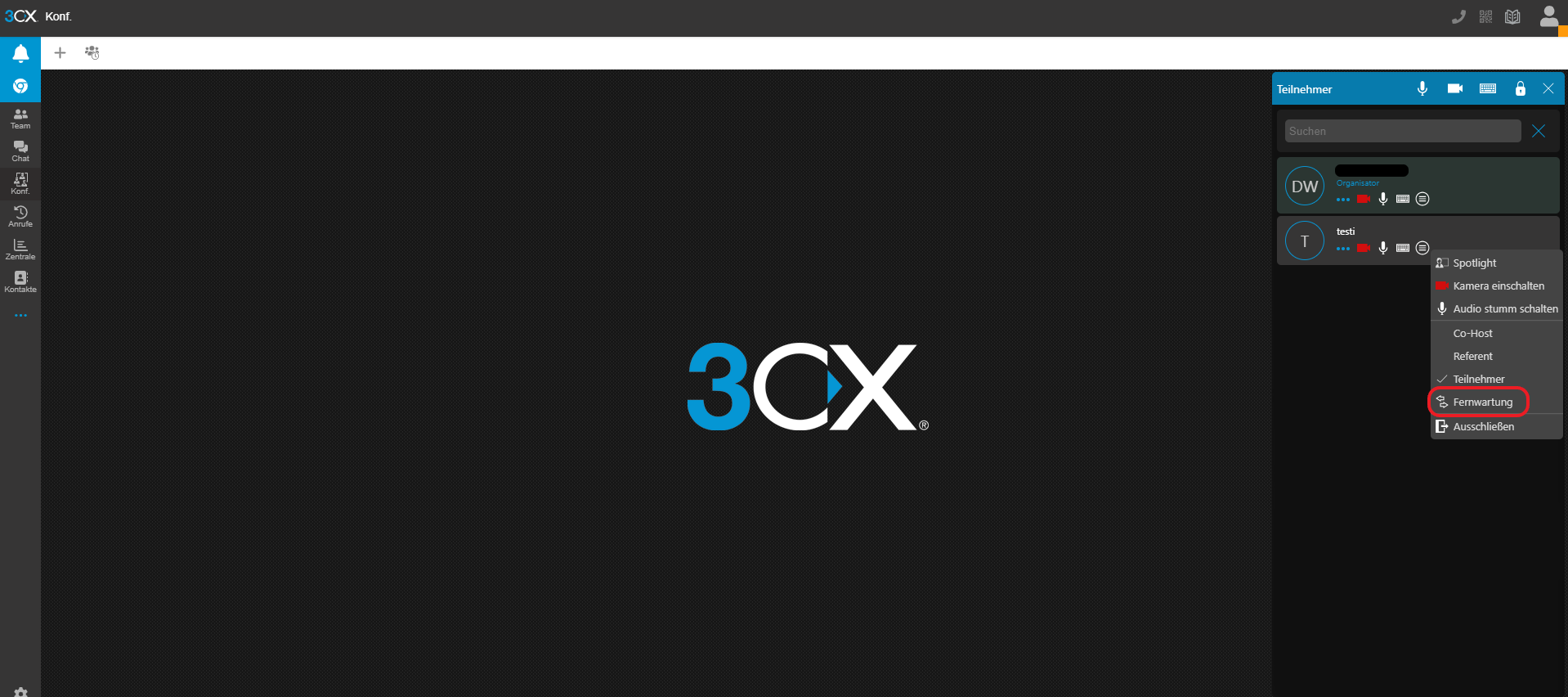 Wem die Funktion neu ist, der findet hier eine kurze Anleitung zur Initiierung der Fernsteuerung in der 3CX Video/Webkonferenz.