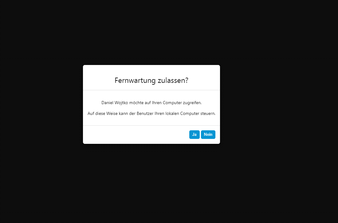 - Der gewählte Teilnehmer muss hier wiederum mit ja bestätigen, um die Freigabe zu erteilen und die Fernsteuerung somit zu akzeptieren.